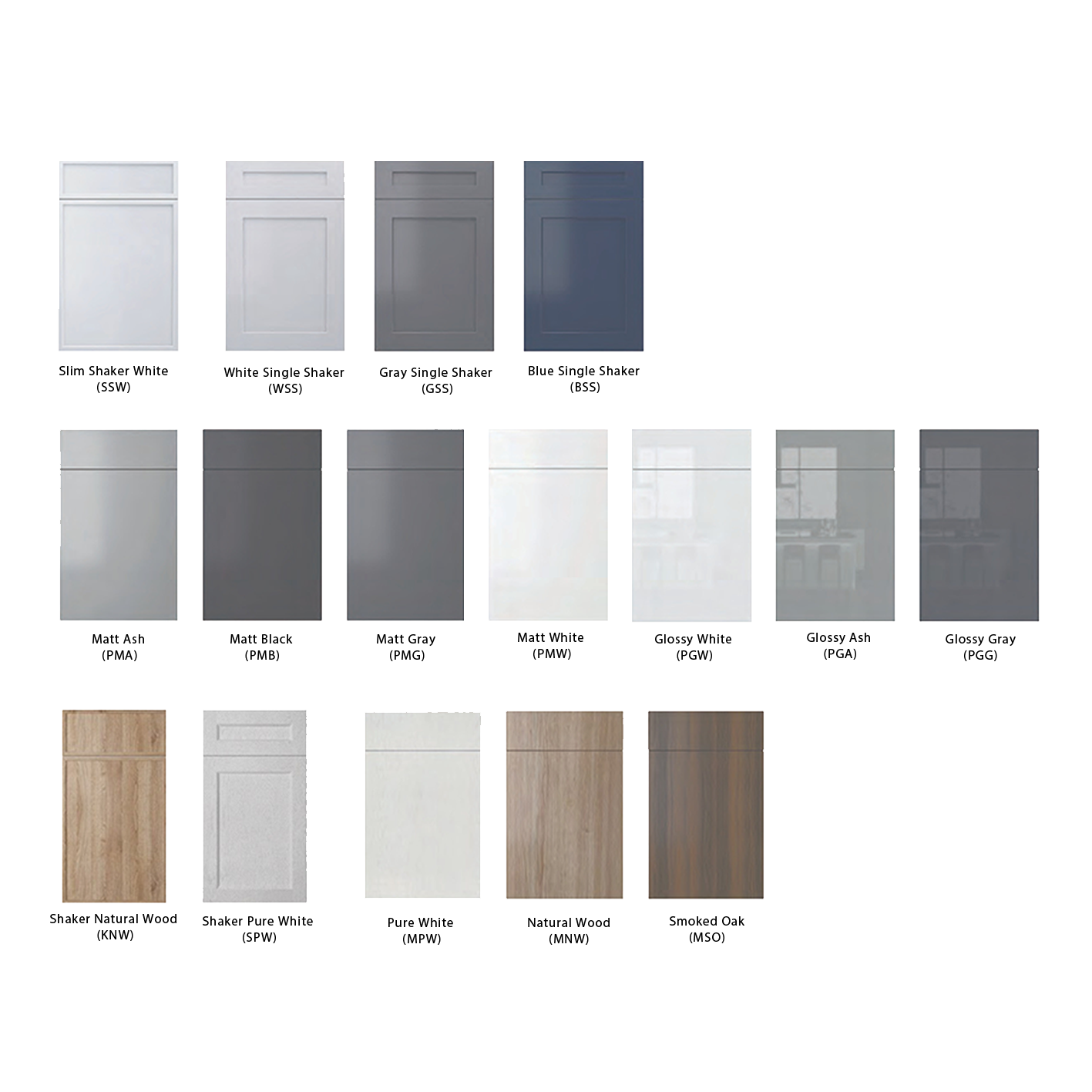 These pre-made kitchen cabinets come in a selection of popular styles, colors, and door designs, including slim shaker, single shaker, and flat door options in wood matte and glossy finishes. Designed for durability and easy installation, they provide reliable storage and a clean, modern appearance. While they do not offer full customization or an exact fit for unique spaces, they are ideal for straightforward layouts, rental properties, and homeowners looking for a practical, cost-effective solution without the longer wait times of custom cabinetry.